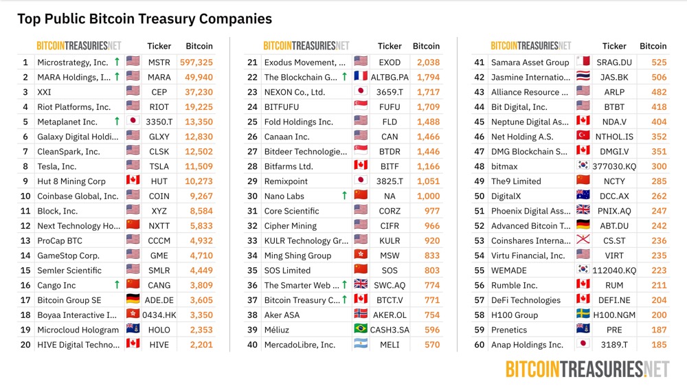前 60 大持有比特币的上市公司